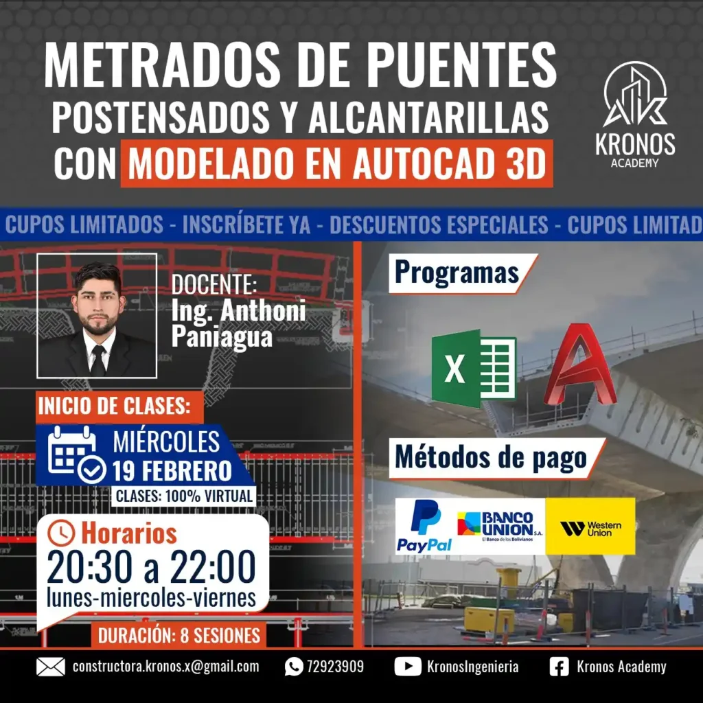 METRADOS DE PUENTES POSTENSADOS Y ALCANTARILLAS CON MODELADO EN AUTOCAD 3D