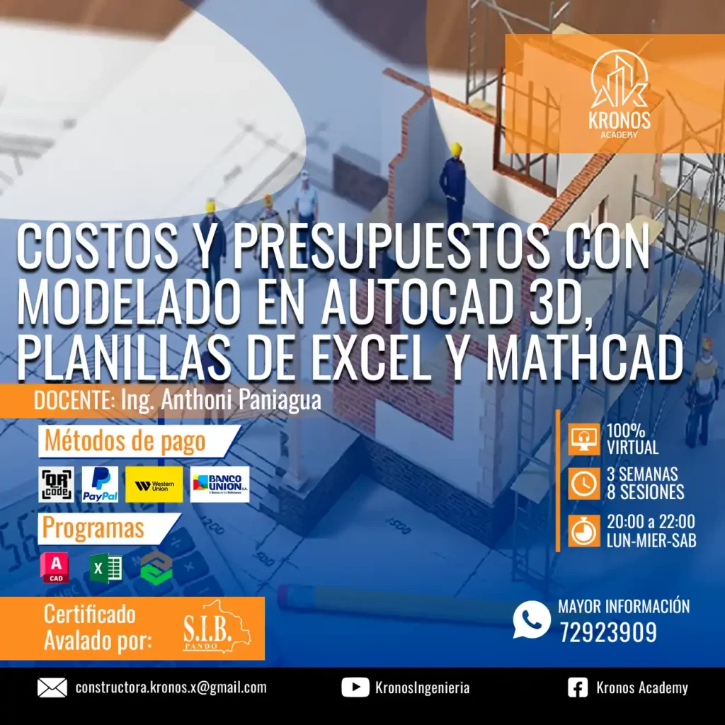 COSTOS Y PRESUPUESTOS CON MODELO EN AUTOCAD 3D, PLANILLAS DE EXCEL Y MATHCAD