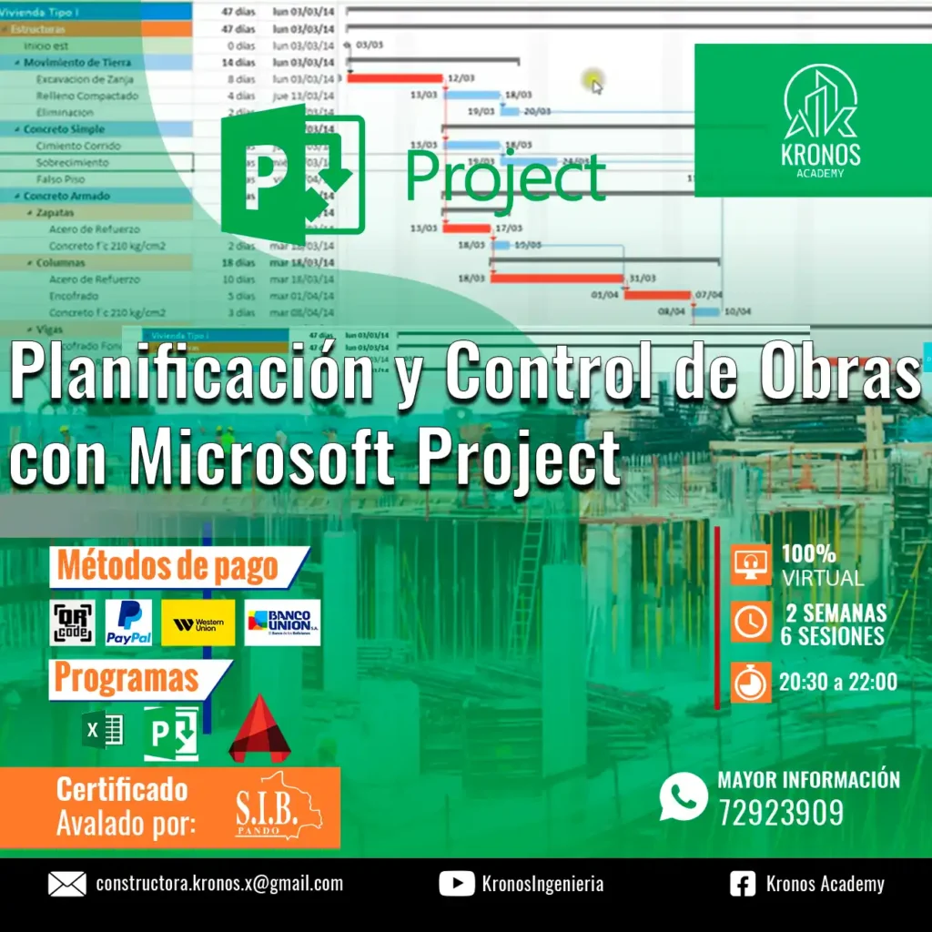 PLANIFICACION Y CONTROL DE OBRAS CON MICROSOFT PROYECT + FUNDAMENTOS PMI