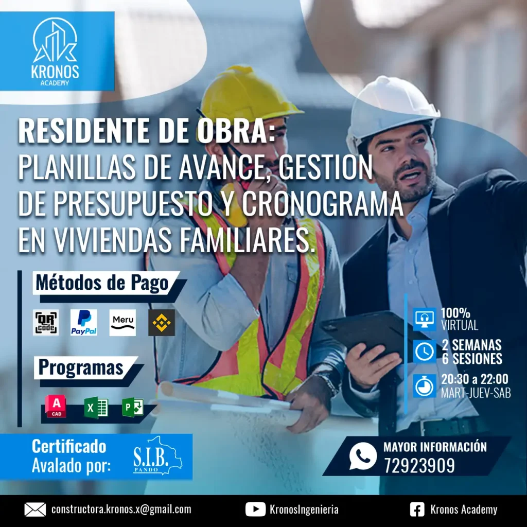 RESIDENTE DE OBRA: PLANILLAS DE AVANCE, GESTION DE PRESUPUESTO Y CRONOGRAMA EN VIVIENDAS