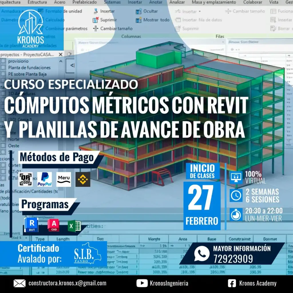CURSO ESPECIALIZADO COMPUTOS METRICOS CON REVIT Y PLANILLAS DE AVANCE DE OBRA